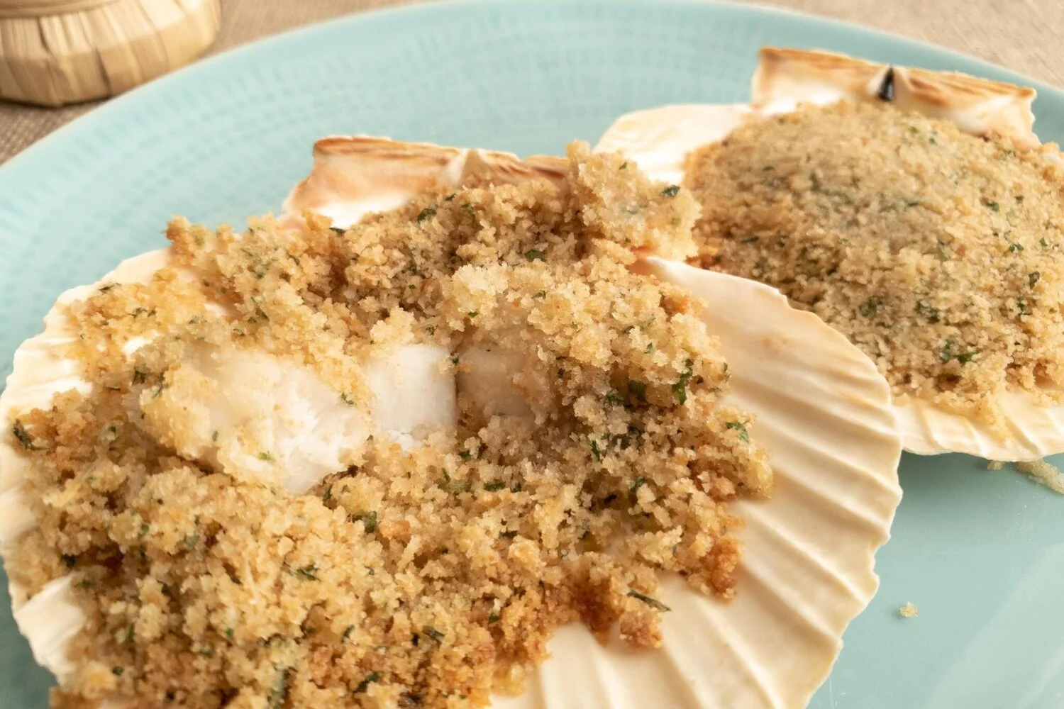 Gratinated scallops Venetian style recipe, gratinated scallops easy recipes, gratinated scallops with breadcrumbs mix