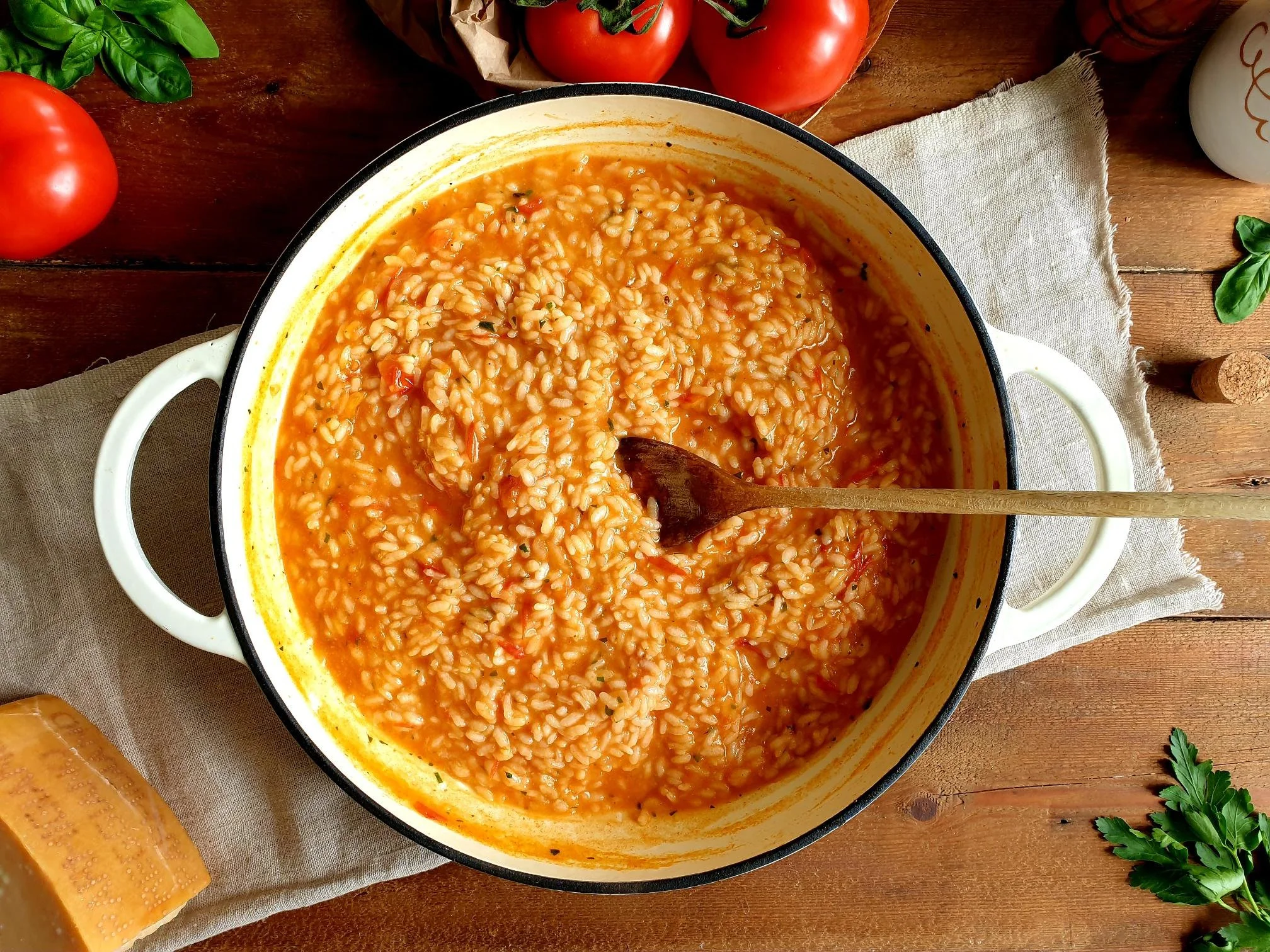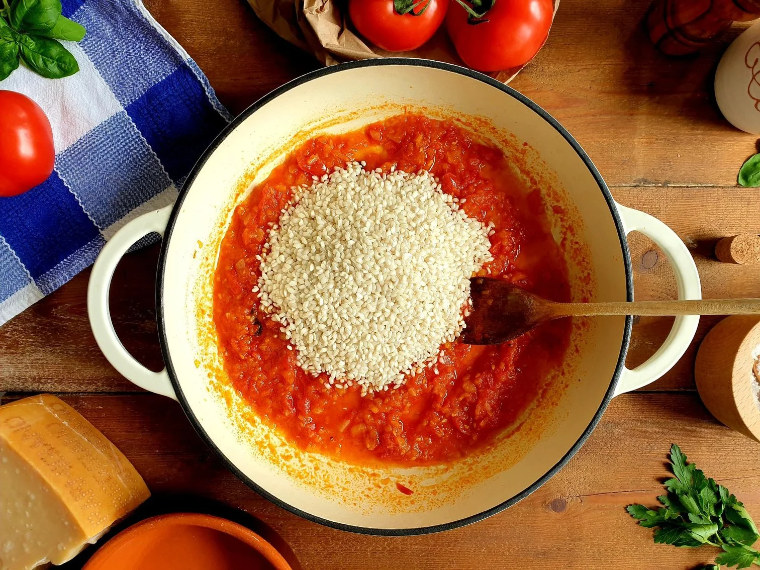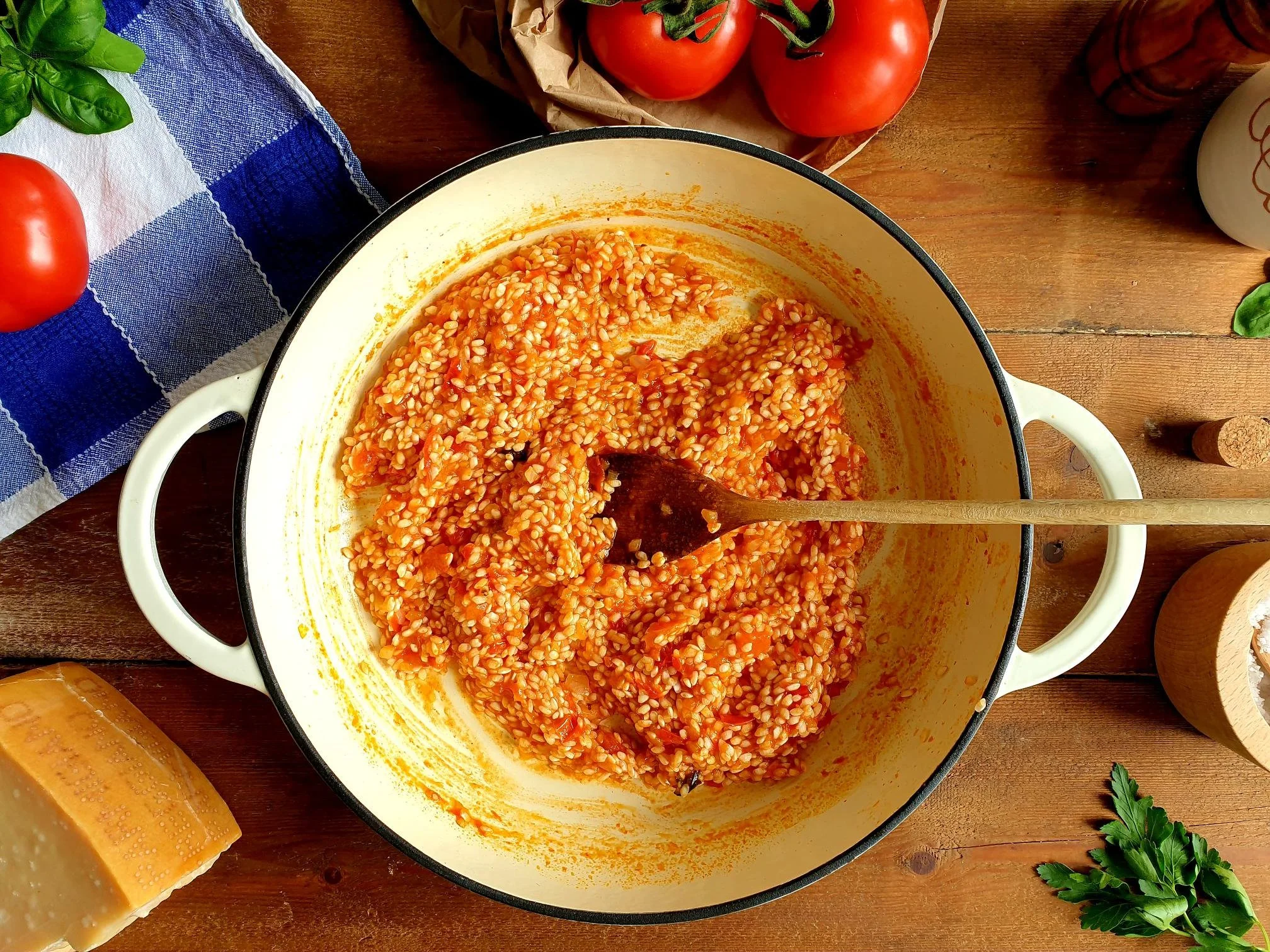 The dish is kind of a super tasty stew where the scampi are cooked in a simple tomato sauce, known as red buzara sauce (as supposed to white buzara sauce without the addition of tomatoes traditionally used to cook the mussels).