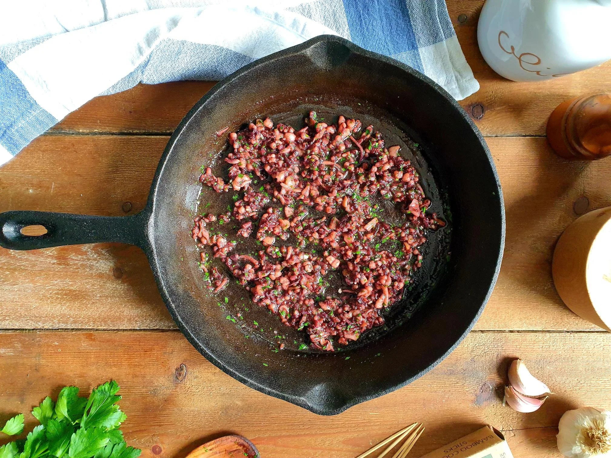 Serve the dish with soft cooked or grilled polenta, or simply, how it is traditionally done, with plenty of rustic crunchy bread. Not cutlery needed here, the dish should be enjoyed eaten with your hands.