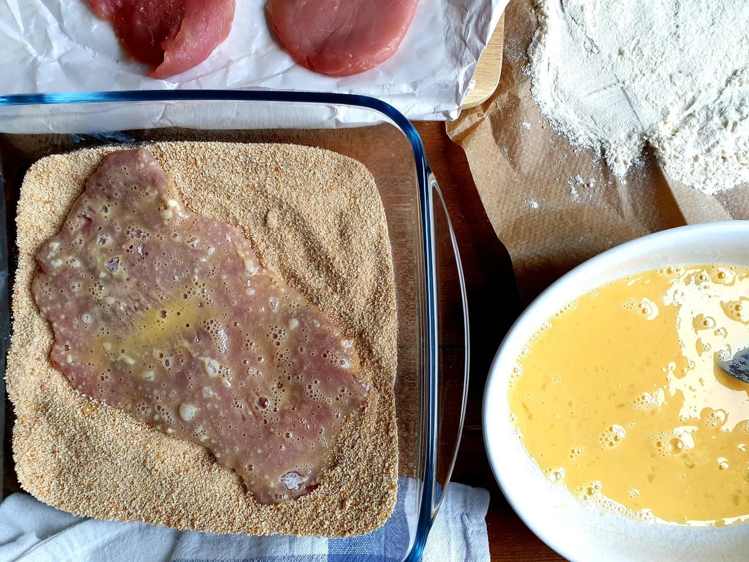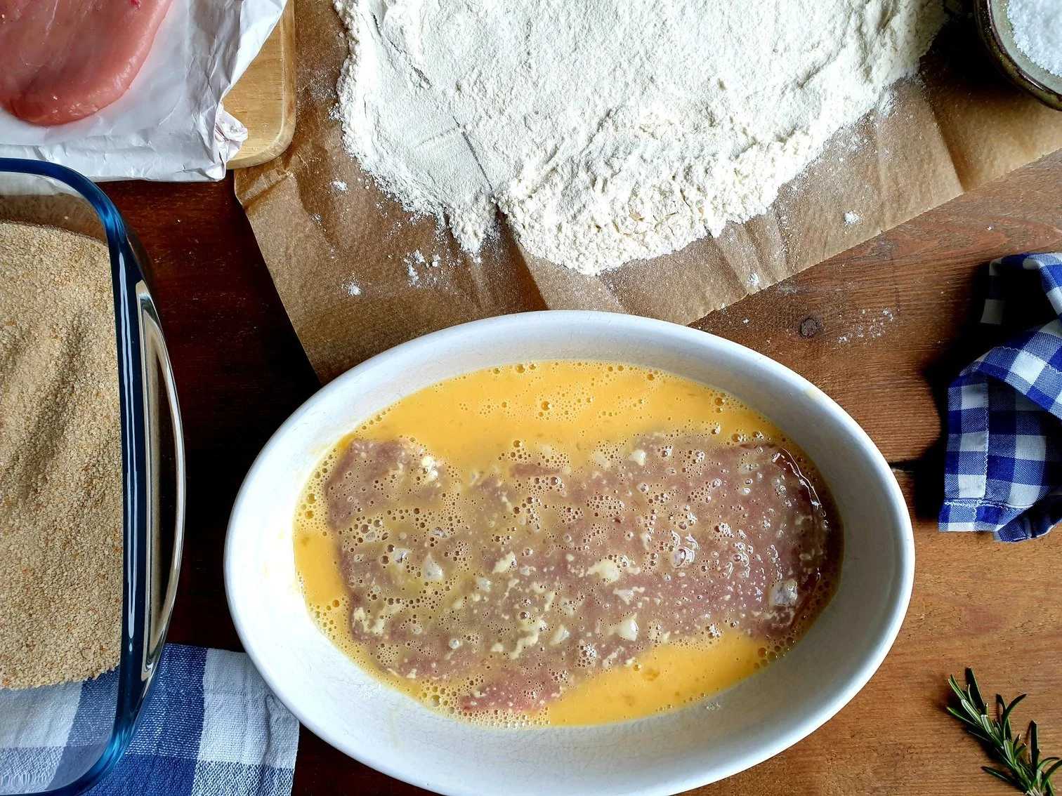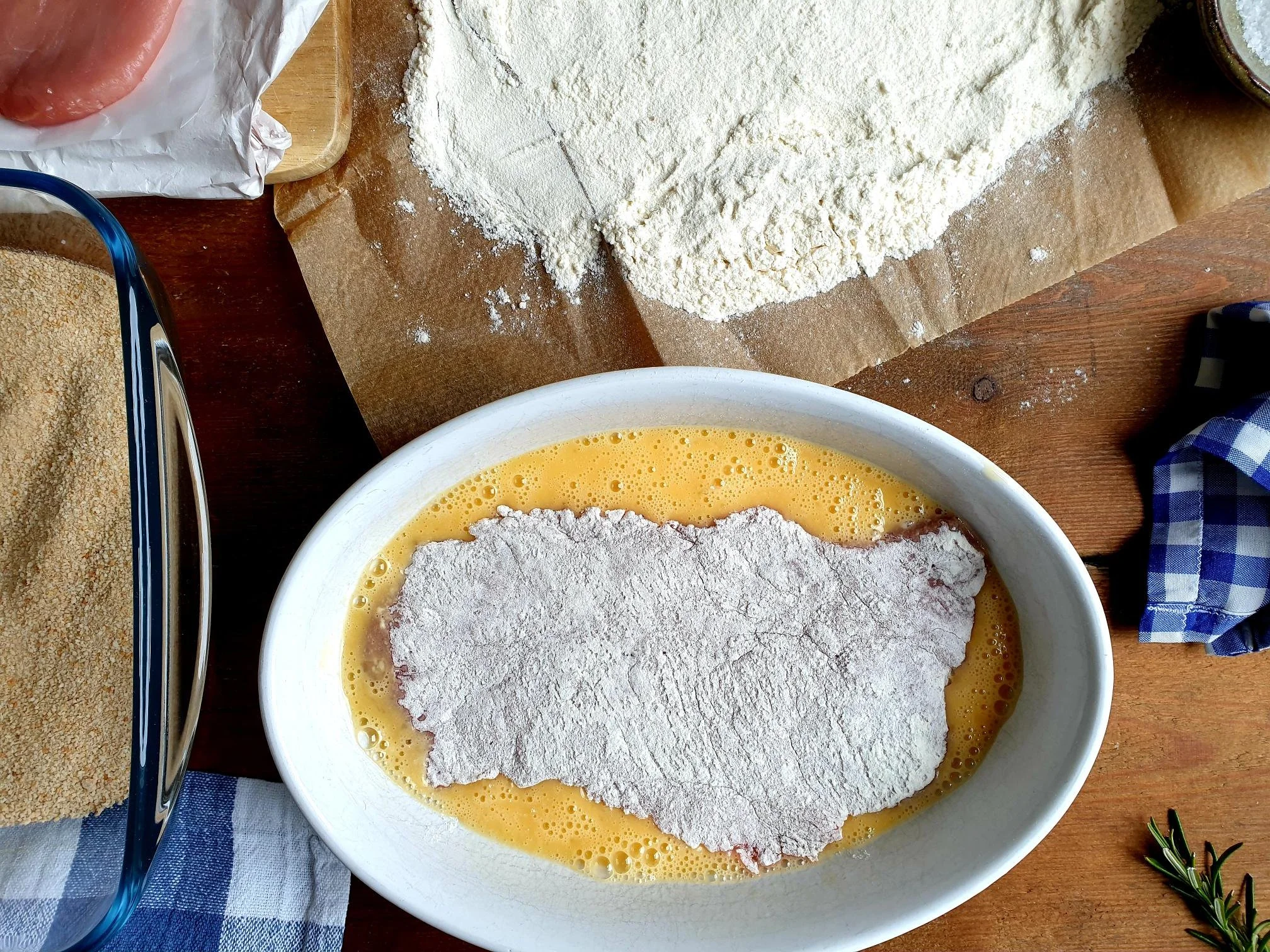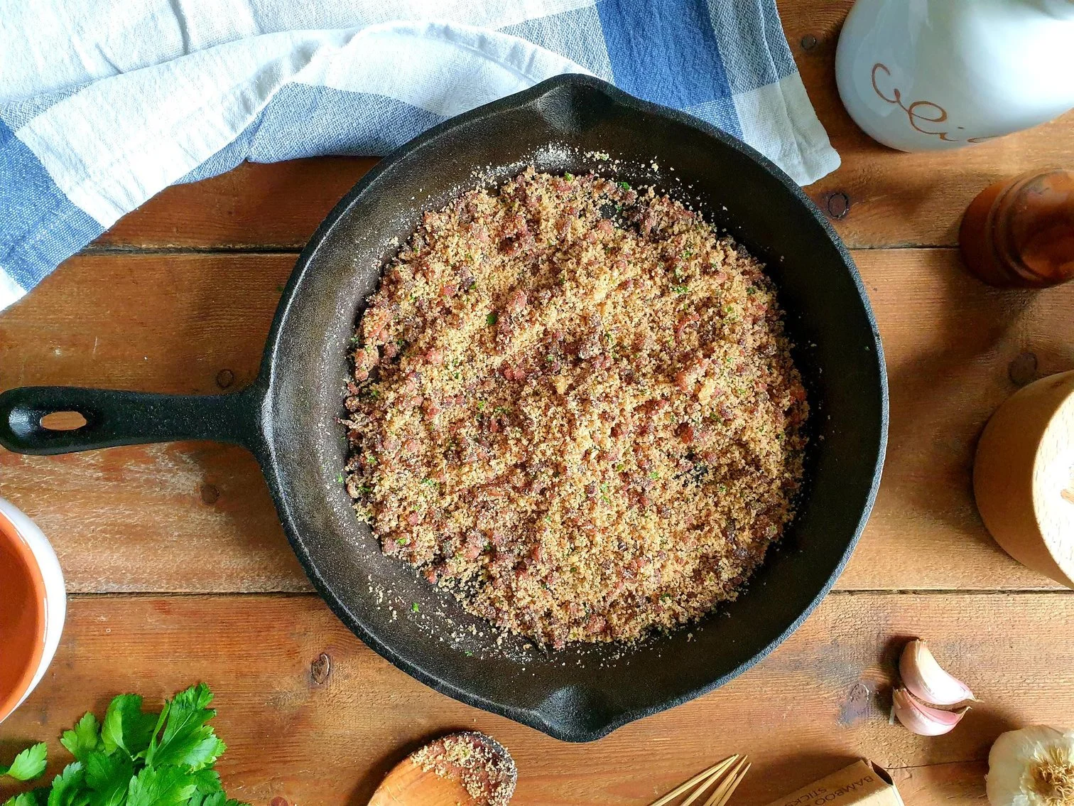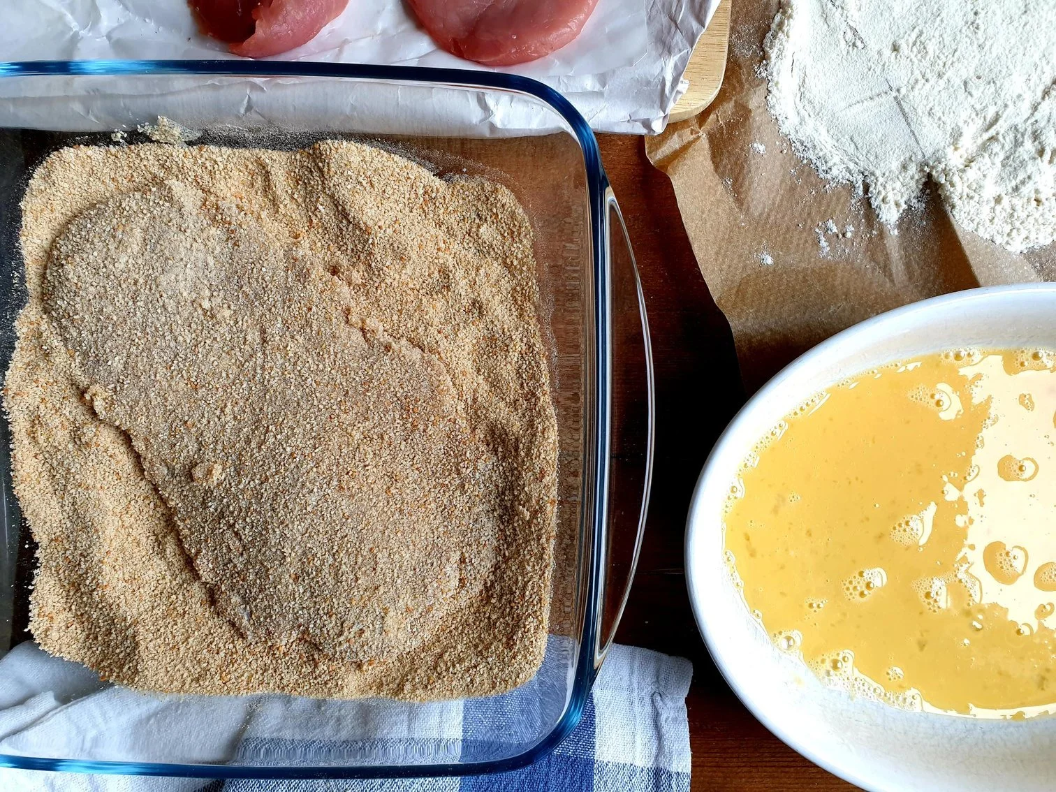 You can add a bit of freshly grated Parmiggiano Reggiano cheese to the breadcrumb mixture.