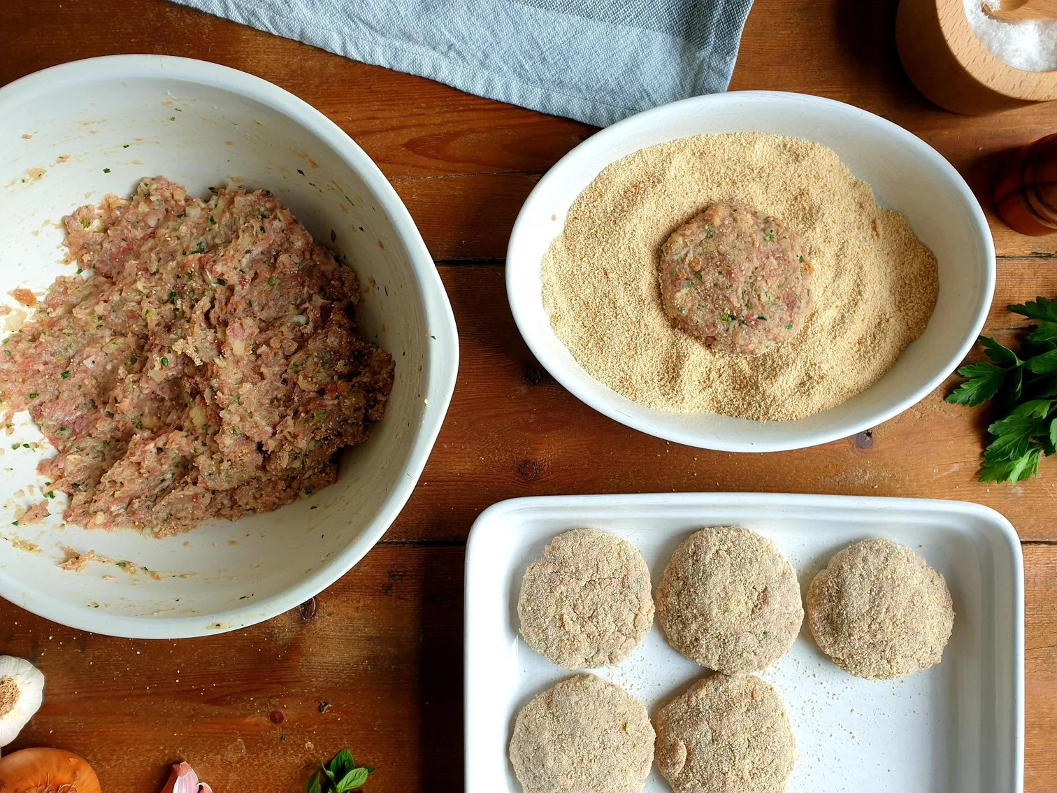 It is quite common also to use parboiled white rice (cooked al dente) instead of dry breadcrumbs to make the filling, and you can also substitute bread crumbs with some old and stale bread (no crust) soaked in a bit of water, squeeze well to remove the excess, 1 lightly beaten egg.