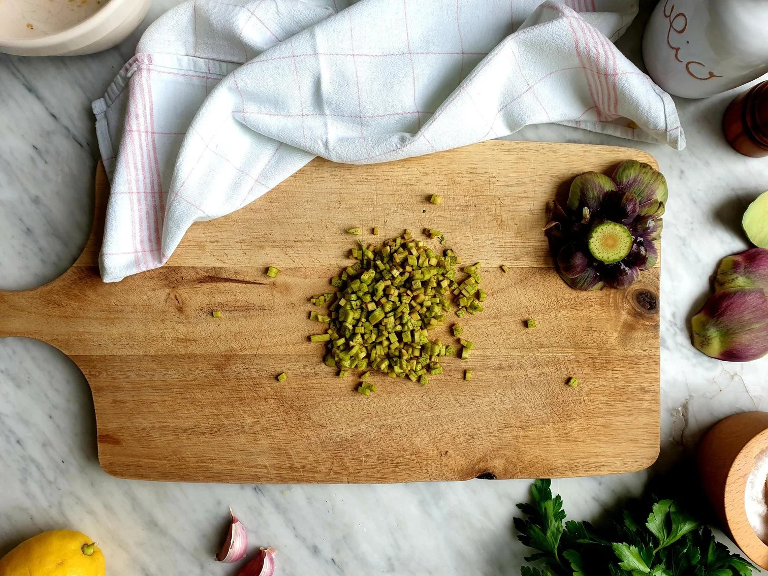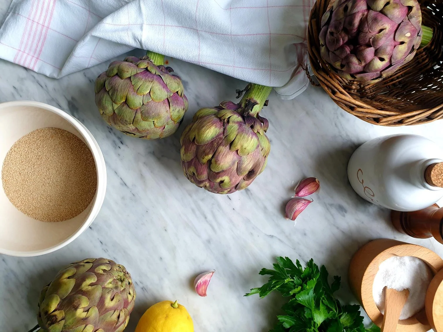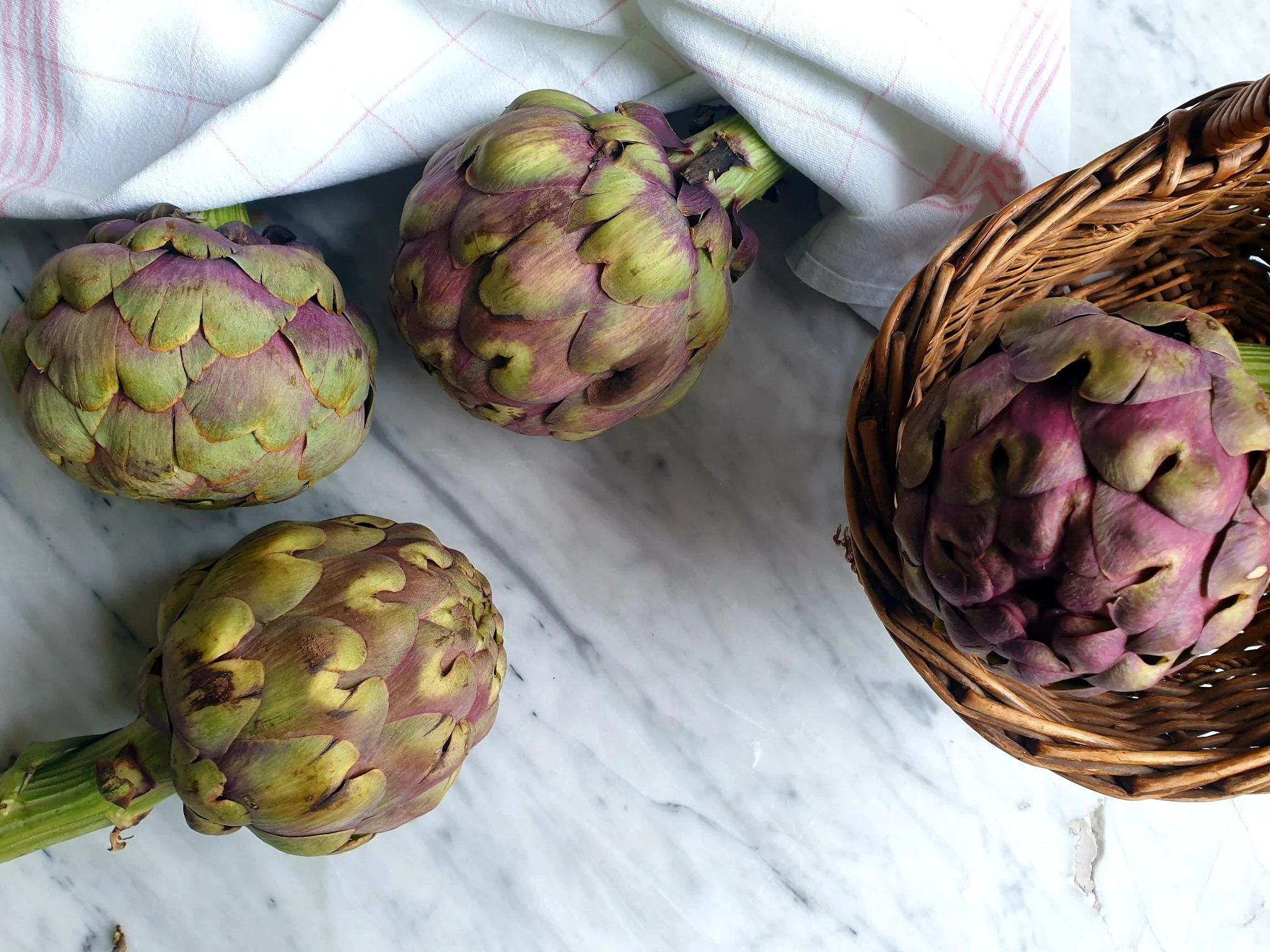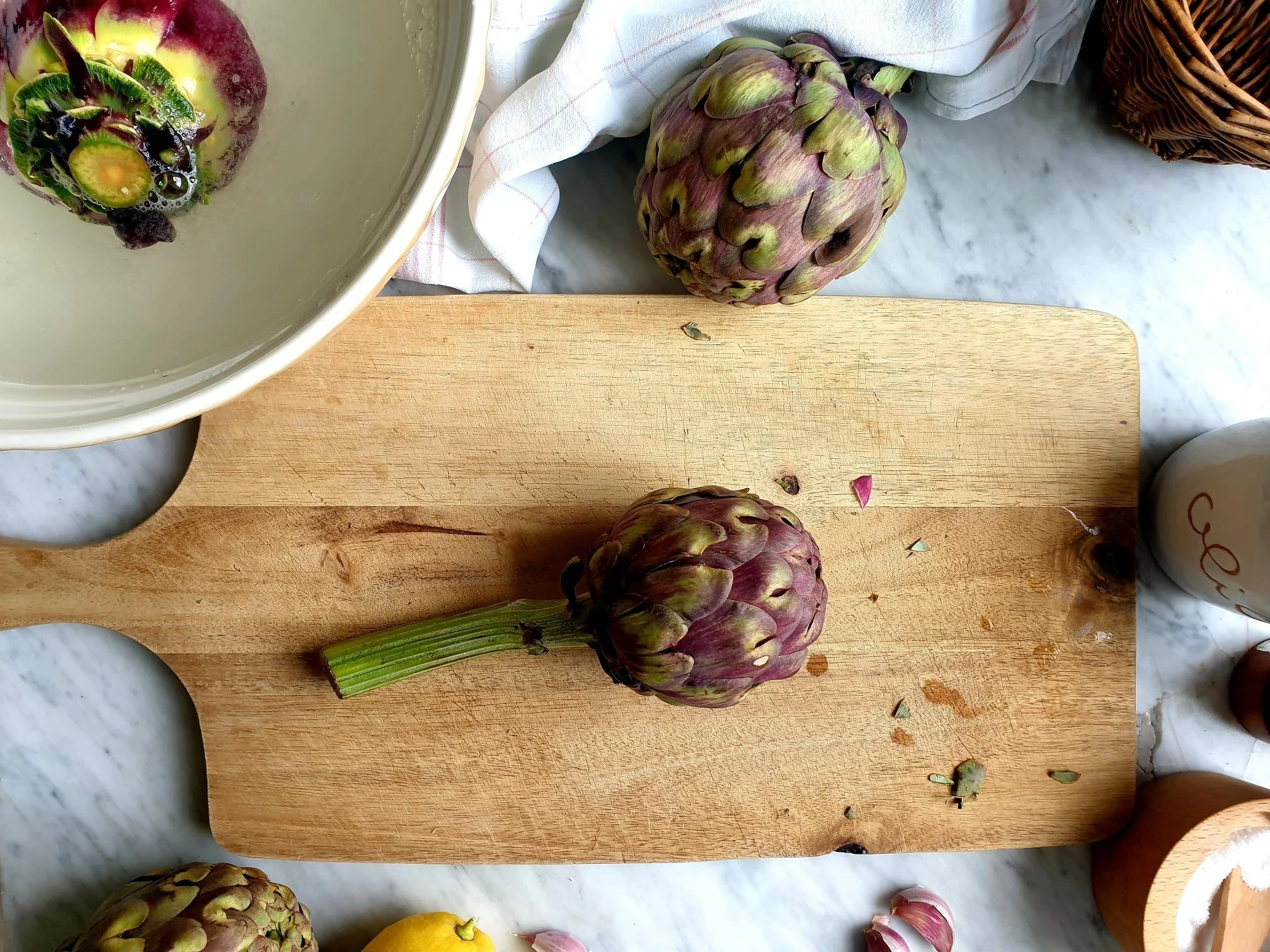 I am sharing here my mum's recipe, I loved cleaning the artichokes with her, and as a child I found pulling the outer leaves such a great fun. I think sometimes I pulled away far too many, but of course, my mother never said anything, and when she cooked this dish it always somehow felt a special treat.