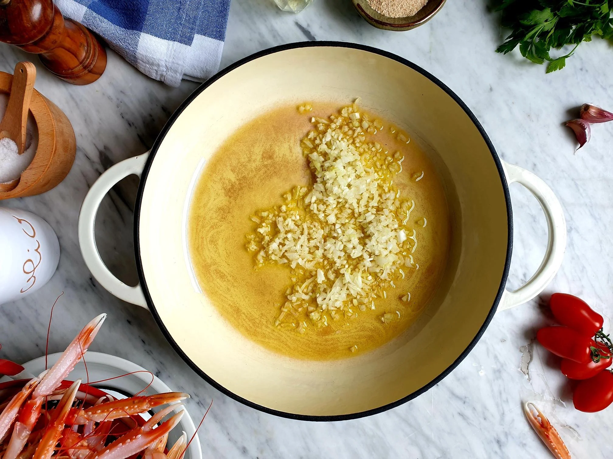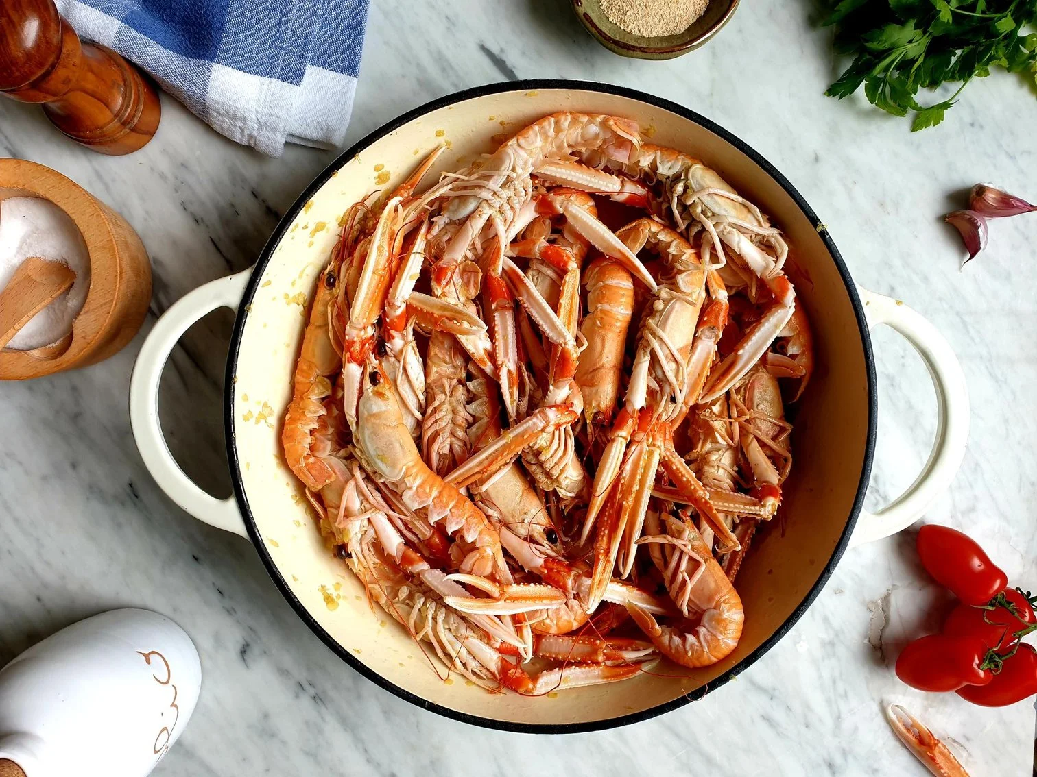 During the cooking process the langoustines release their juices and together with the rest of the ingredients make the most delicious sauce.