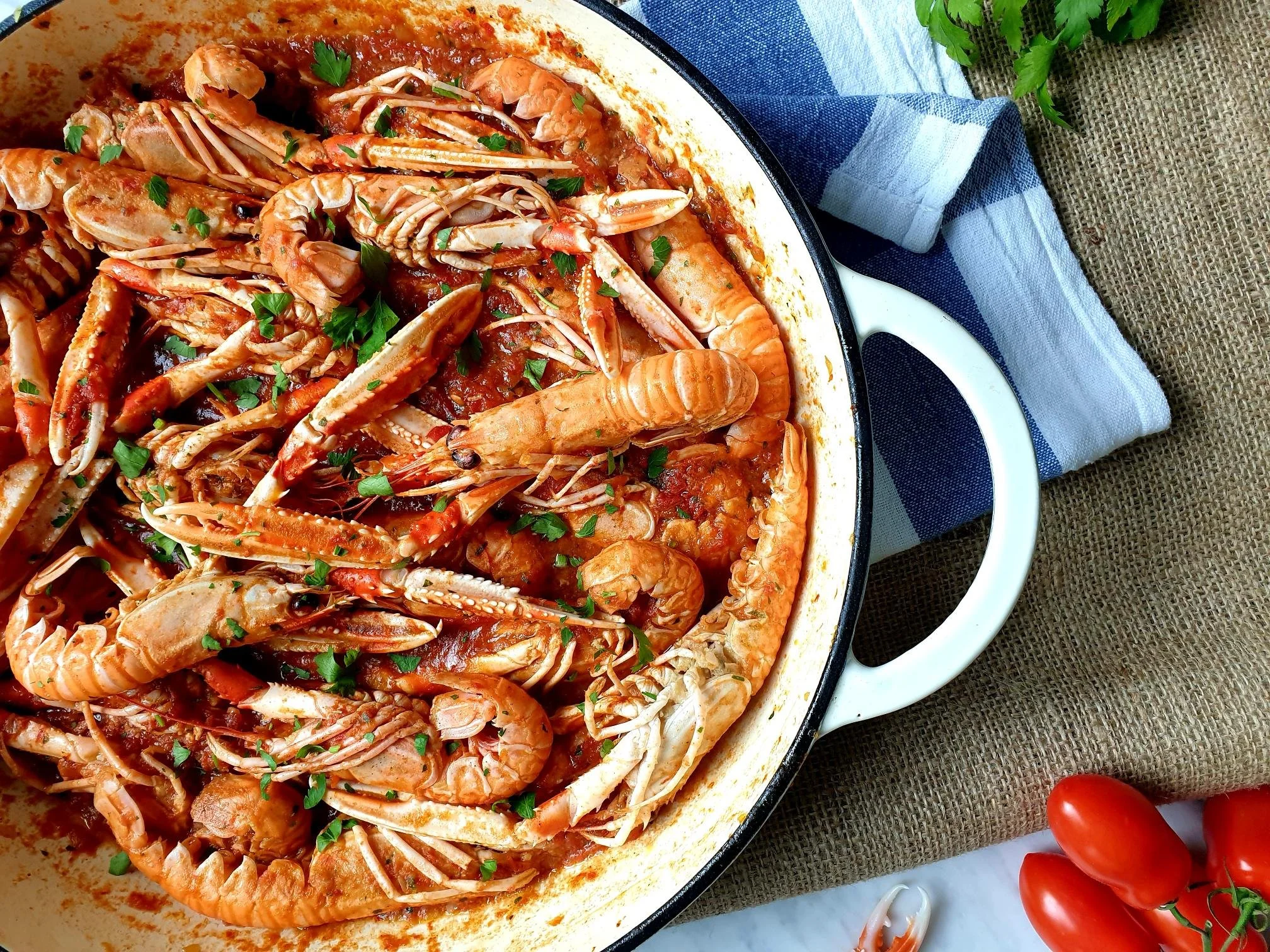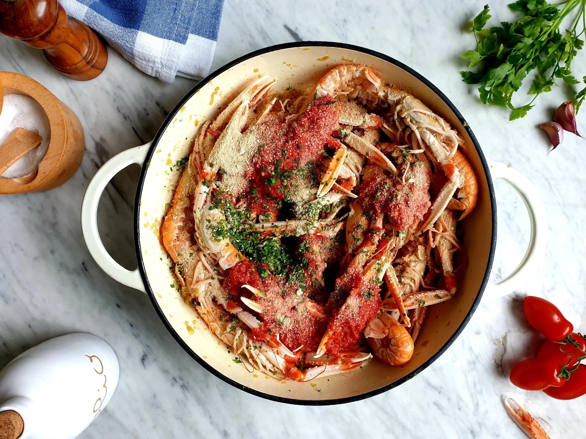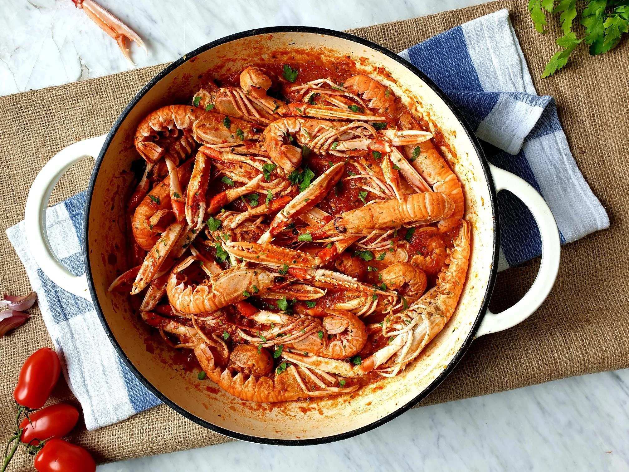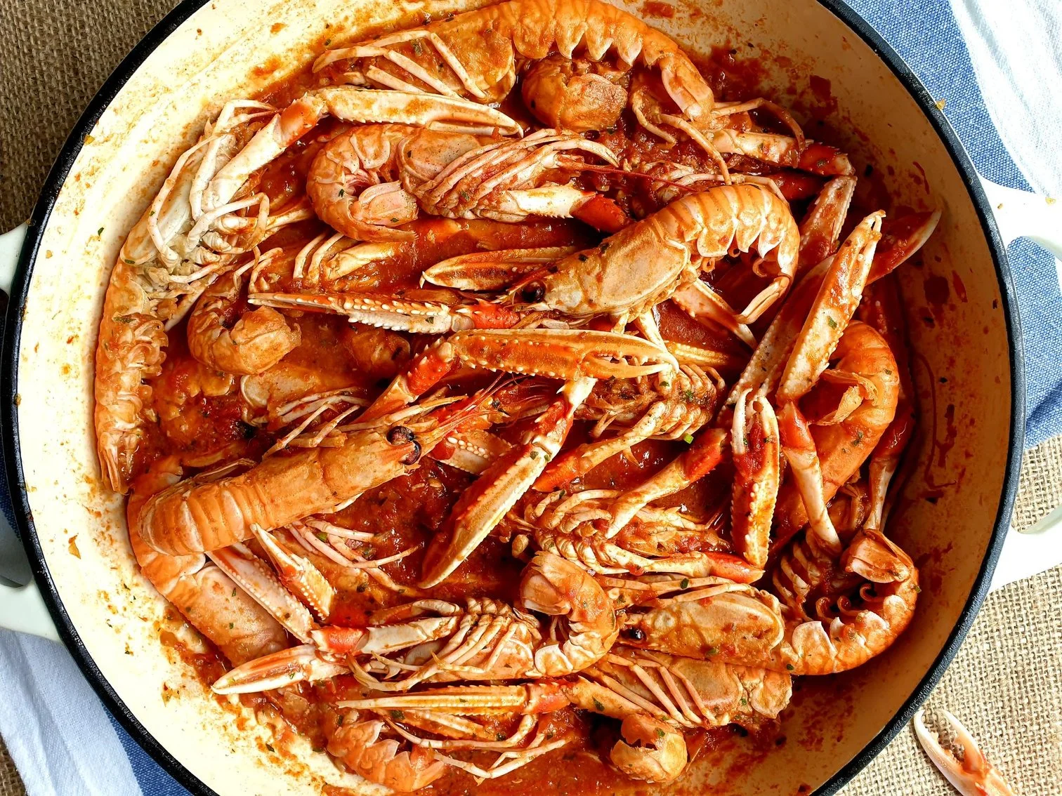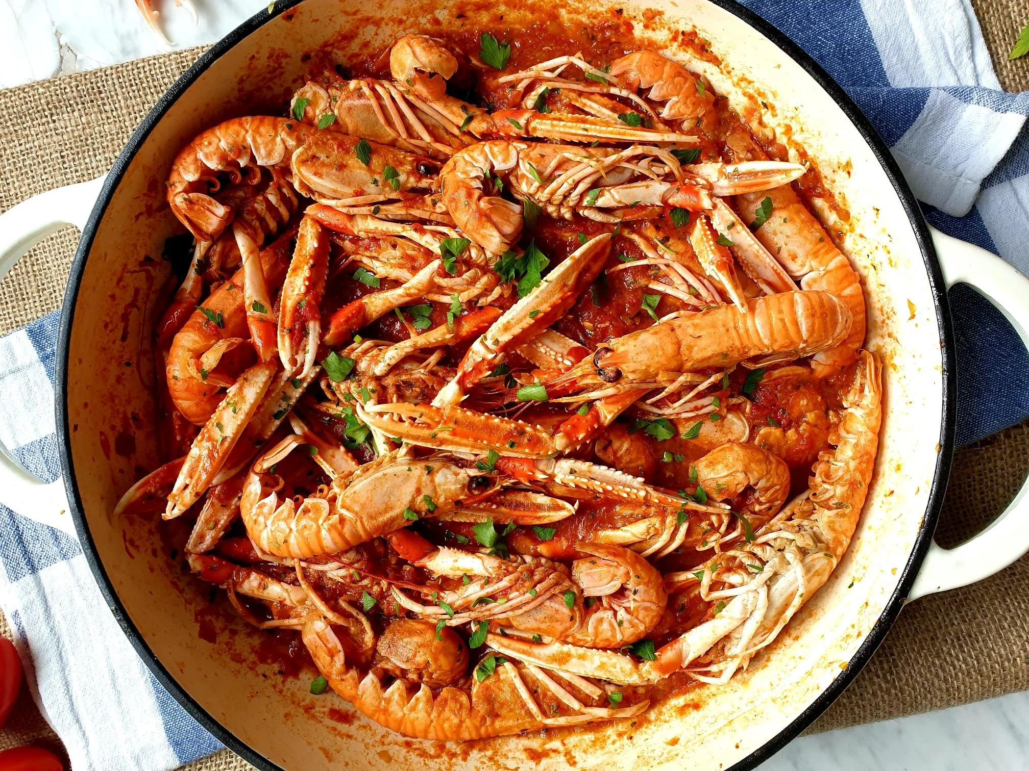 Scampi in tomato (buzara style) sauce Istrian Recipe