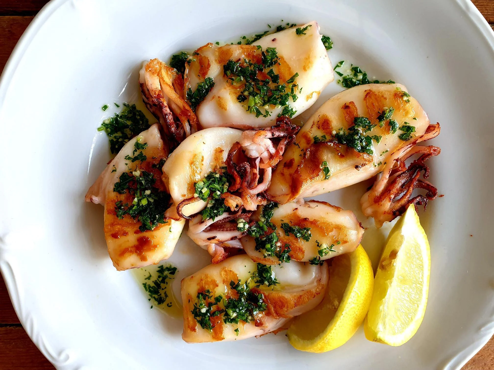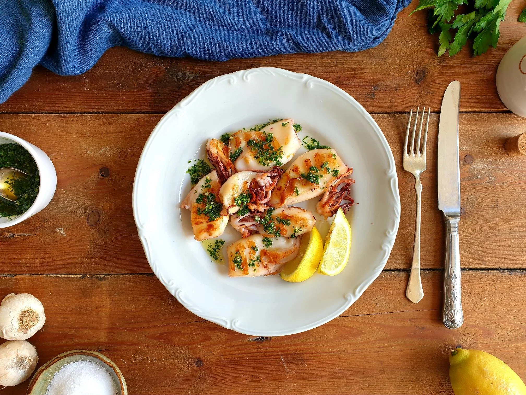 Stuffed squid is a light and delicate fish based dish packed full of flavour, with simple ingredients being used for the stuffing mixture to maximise the scent and flavour of the squid.