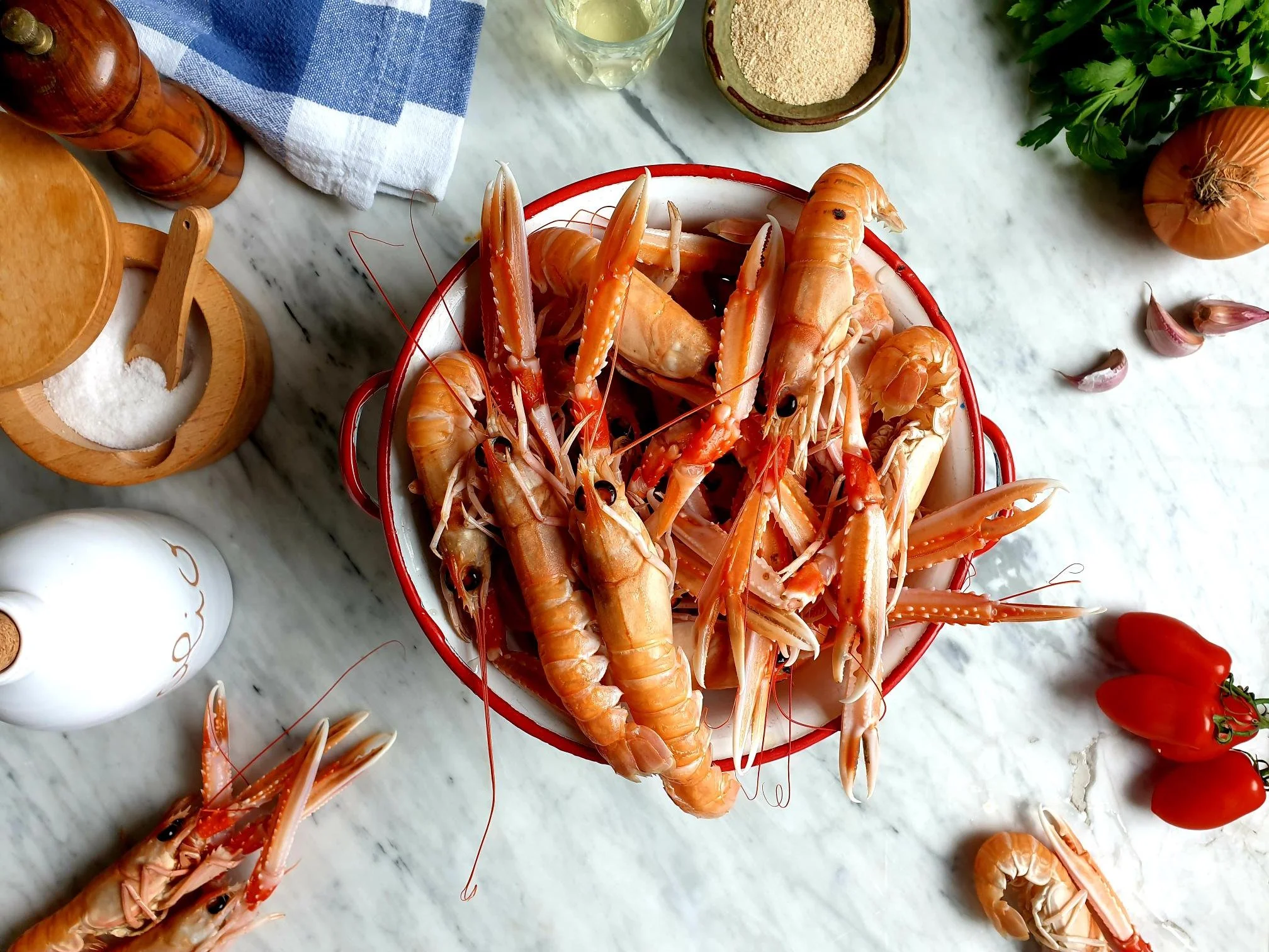 scampi, langoustines, buzara sauce, busara sauce, red buzara sauce, Škampi na buzaro, Scampi alla busara