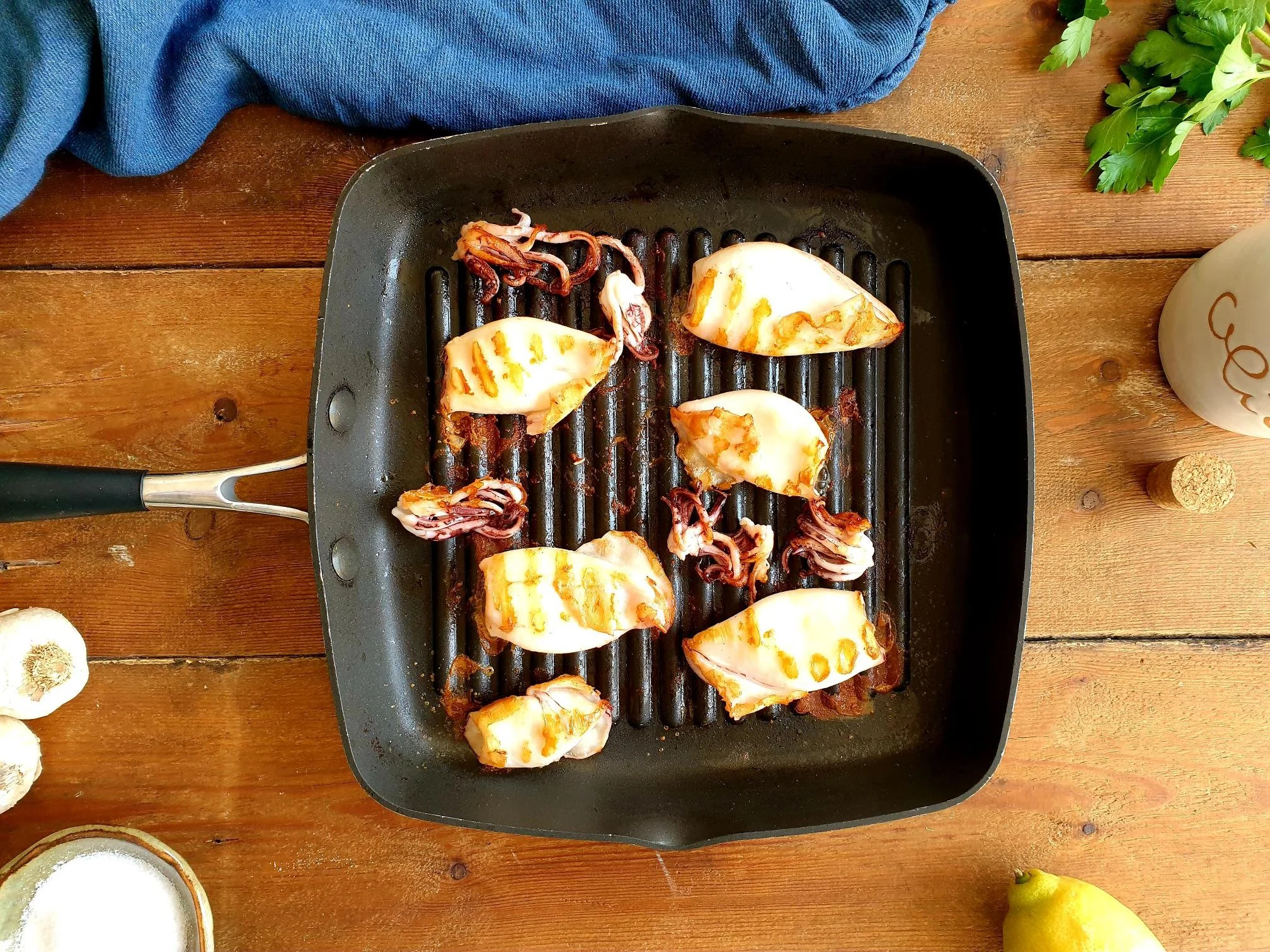 If you do want to be ahead of time you can clean the squid and make the filling a day before and store them overnight in the refrigerator in an airtight container or covered with cling film.