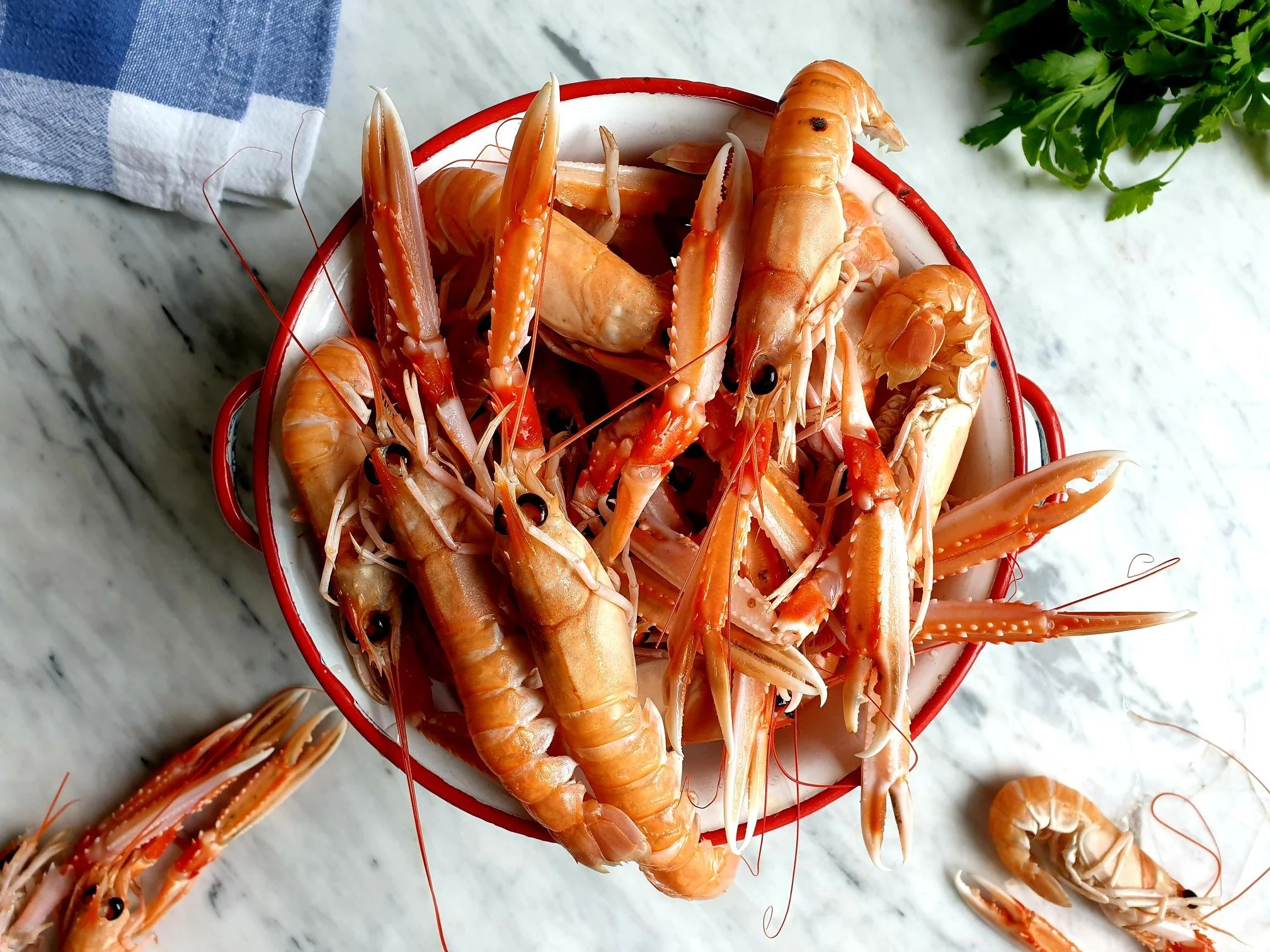 Great for dinner parties and kids have great fun unpeeling the langoustine tails. They feel a bit special and grown up, and it is a great way to get them familiar with the seafood from a very early age.