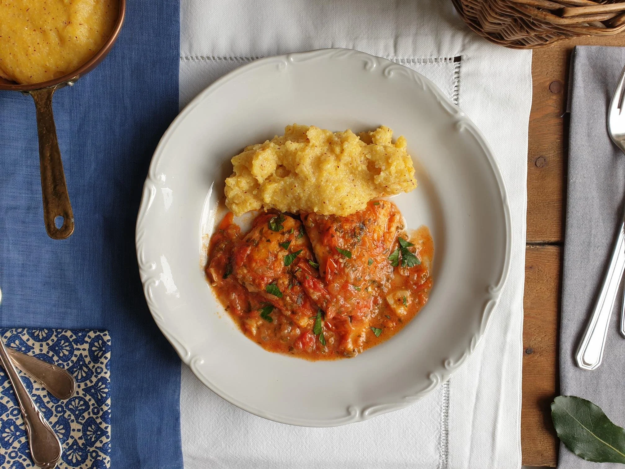 This dish is traditionally served with soft cooked polenta or some crunchy bread to soak up the sauce.